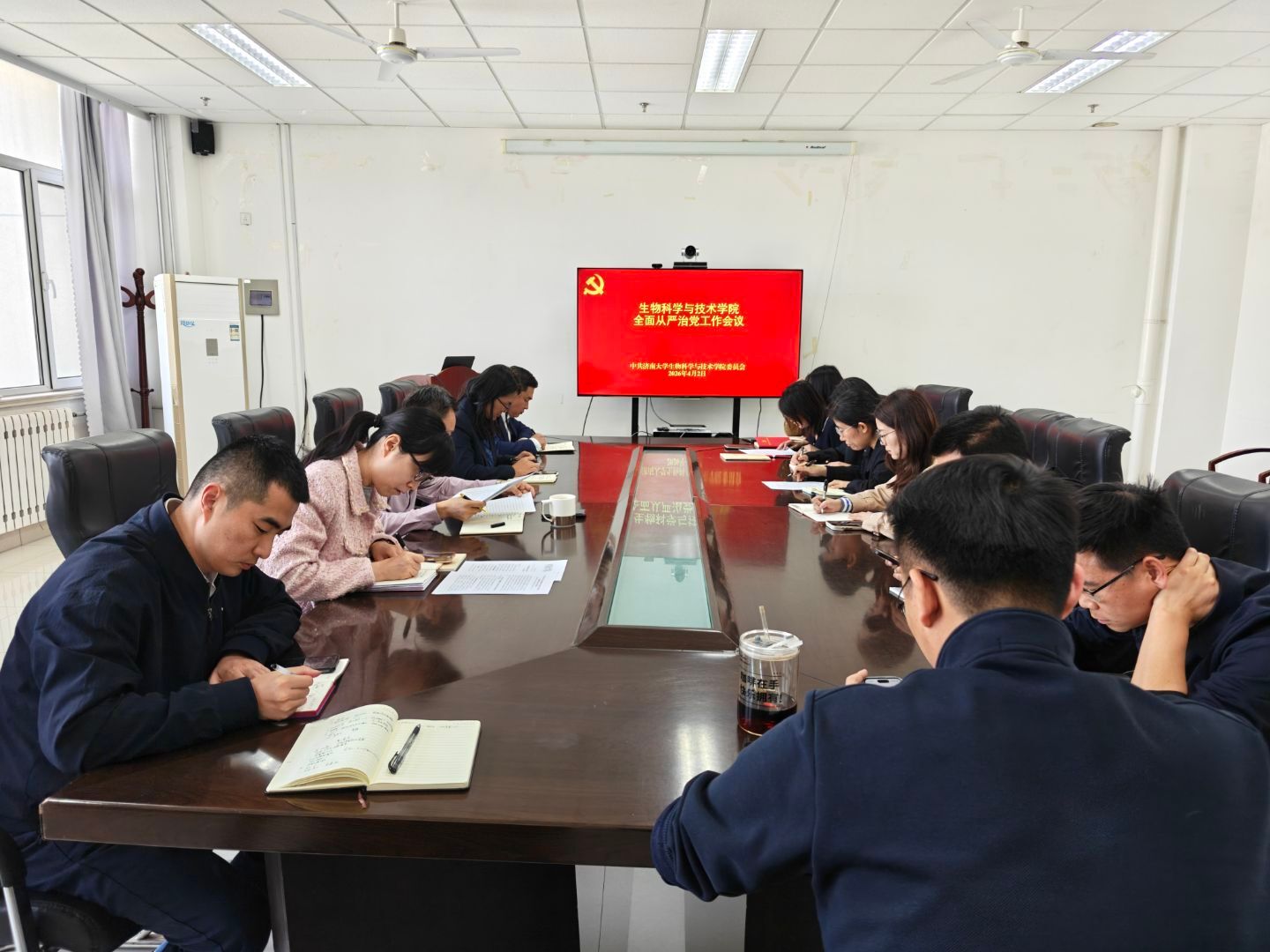 在特教楼1010室召开2026年度全面从严治党工作会议。深入学习贯彻习近平总书记在二十届中央纪委五次全会上的重要讲话和全会精神,以及全国、全省教育系统全面从严治党会议精神、学校全面从严治党会议精神。学院党委领导班子成员、组织员、党支部书记等参加会议。学院党委书记史国普主持会议。