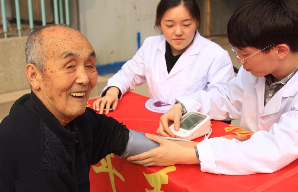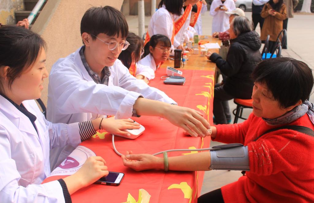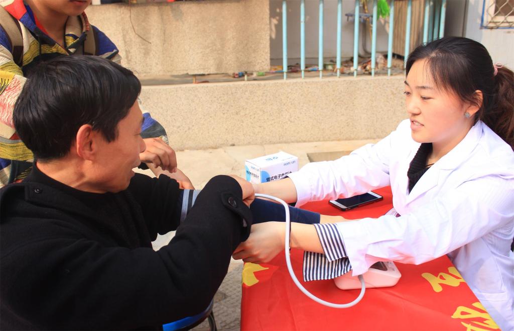 此次义诊活动主要面向学校退休教职工、教职工家属及学校周边社区的老年人。下午两点三十分,阳光正暖,一群身穿白大褂的学生志愿者已早早做好了准备。在学校离退休工作处老师们的组织和帮助下,我校退休教职工及家属们陆续来到了义诊中心。av解说志愿服务队此次为老人们提供的服务有测量血压、血糖、血氧以及身高体重,测量工作完成后,志愿者们会根据结果为老人们提供合理的饮食和活动建议。