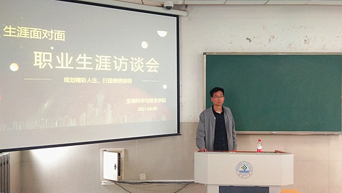 在10J306举办职业生涯访谈会活动,邀请邦恩泰生物集团研发总裁刘磊教授来校宣讲。活动由av解说