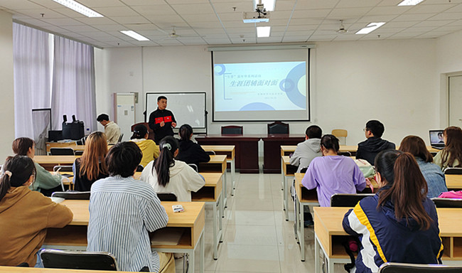 活动伊始,王栋老师从职业与生涯的概念及其相互联系切入,讲述了进行职业生涯规划的积极意义和撰写职业生涯规划书的思路方法。随后,他结合职业生涯规划大赛优秀作品实例,分享了职业生涯规划书的内容框架及内在逻辑。他强调,职业生涯规划书首先是一个设计方案。要撰写一篇有价值的规划书,既要深入探索自我,注重兴趣、能力、特质与价值观的一致性,也要切实分析家庭、学校、社会和职业等环境因素,关注专业、行业、职业、企业、地域等多重因素。在确定职业目标的基础上,应制定切实可行的计划,并随时依据自身需求变化或环境变化进行有效评估调整。最后,他依据学生现场问题反馈,与学生进行了答疑互动。为学生参加生涯职业规划大赛奠定一定的知识基础,并使学生初步掌握职业规划书的制定方法。