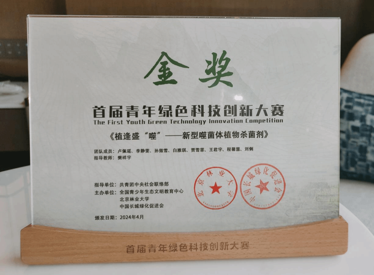 非常荣幸参与首届青年绿色科技创新大赛决赛,并荣获金奖,这是团队成员集体合作、老师精心指导的成果,也是专家评委对研究思路及成果开拓创新的认可。比赛过程中,我也遇见了许多在绿色发展领域啃“硬骨头”的科研工作者,在思维的碰撞中让我理解到了科研扎根于实践的重要性。未来,我们将会在噬菌体研究领域继续深入学习,争取取得更加优秀的作品和成果,助力人与自然和谐相处,为美丽中国建设贡献青春力量。