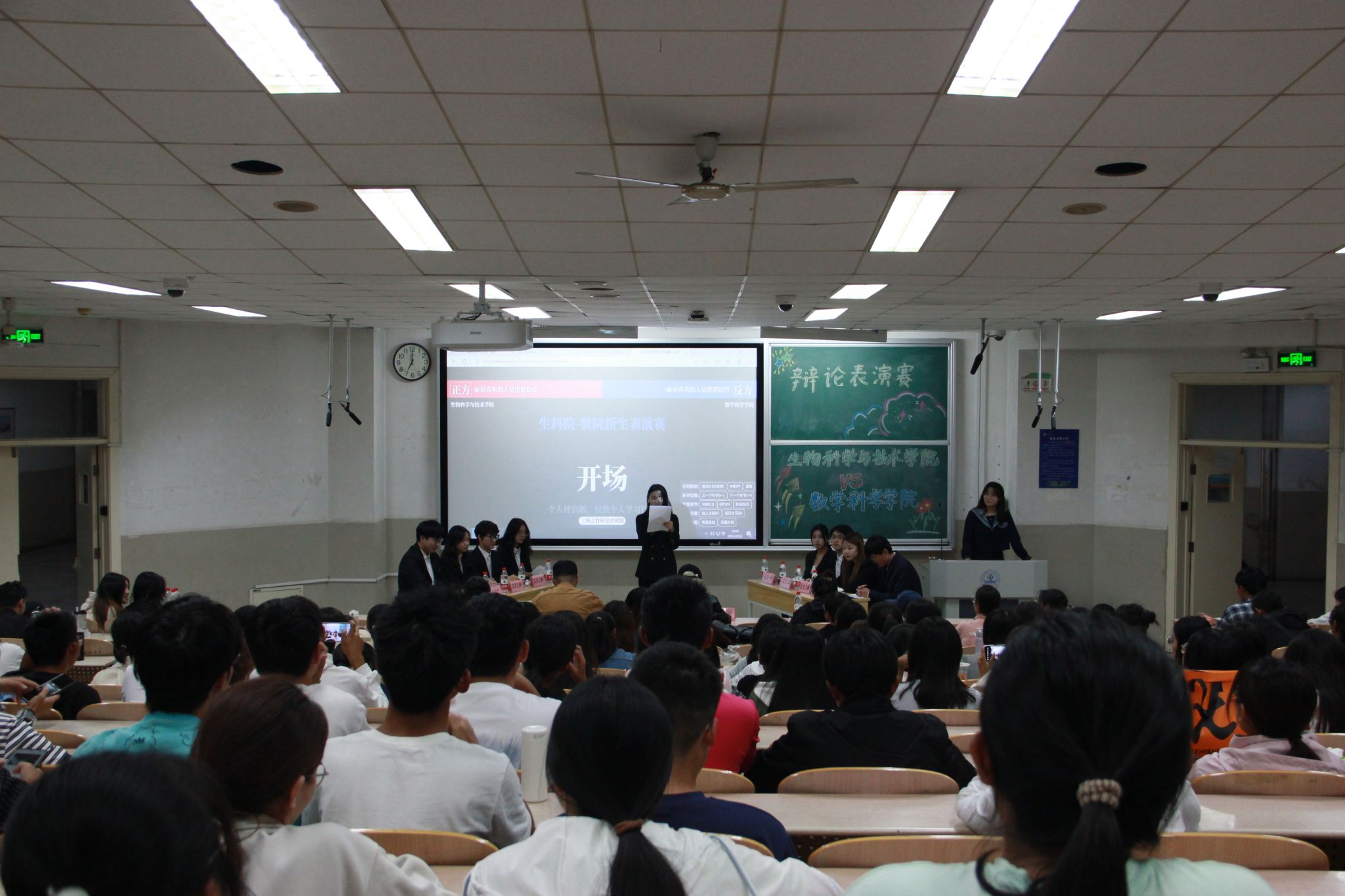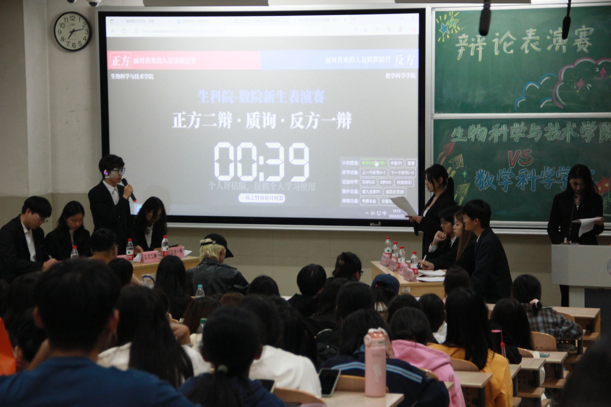共同举行了一场精彩的辩论表演赛,比赛围绕辩题“面对喜欢的人,是勇敢追爱还是默默陪伴”展开了激烈的辩论。