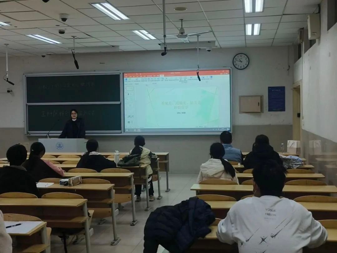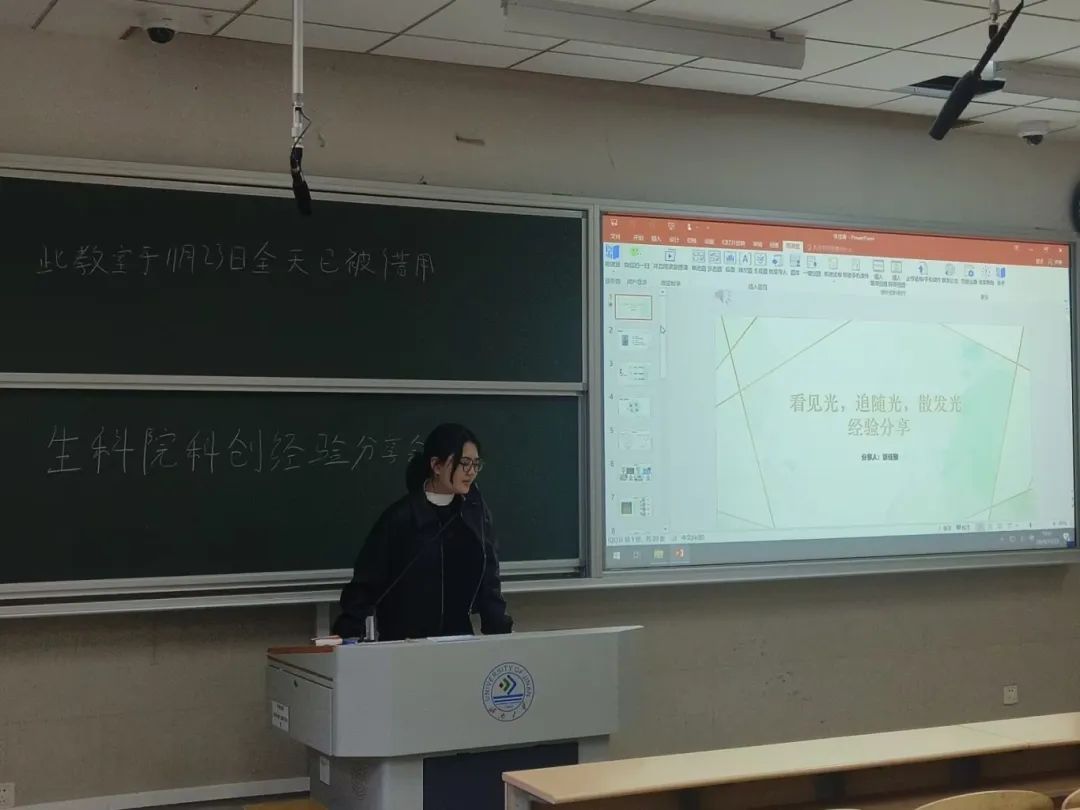 举办了科创经验分享会,活动邀请了2023届优秀毕业生、山东省拔尖选调生张佳馨和2021级在校生卢佩瑶进行分享。