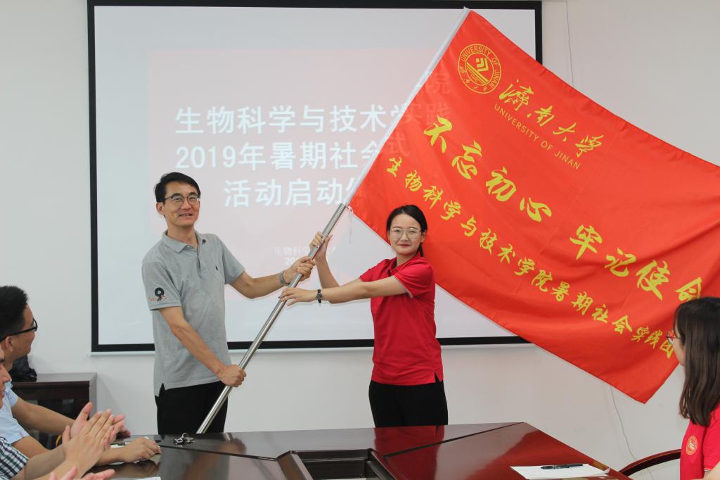 陈卫东书记向“三下乡”实践团队授旗,团队成员从陈书记手中接过庄严的旗帜的同时,也担负起了一份沉甸甸的责任。希望同学们通过暑期“三下乡”社会实践活动切实感受新中国成立70周年取得的巨大成就,增强责任感和使命感,勇做担当民族复兴大任的时代新人!