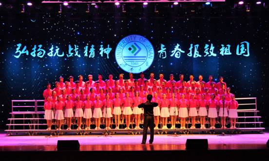 内部凝聚力,丰富校园文娱活动,宣扬抗战精神,我校于10月14日晚在学校大礼堂成功举办以“弘扬抗战精神 青春报效祖国”为主题的第二届新生合唱节,av解说