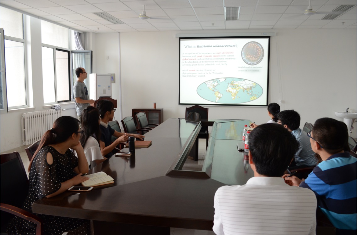 2017年7月6日上午10:30,av解说在特教楼B1006举办了“青年教师学术沙龙”活动,本次沙龙活动邀请李鹏博士做了题为“phc群体感应系统调控青枯菌与真菌跨界通讯--揭示青枯菌新的生存策略”学术报告。活动由科研管理办公室主任闫峰老师主持。
