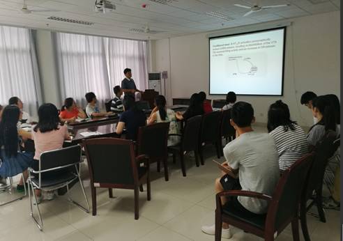 报告会上,高明教授重点介绍了5-HT1B受体对可卡因奖赏行为的作用机制研究,5HT1B受体、D2受体及DA受体在药物成瘾过程中的相互关系以及神经药理学在药物先导化合物转化为药物过程中的应用。报告会后,高明教授与参会老师和同学们进行了热烈的讨论交流。