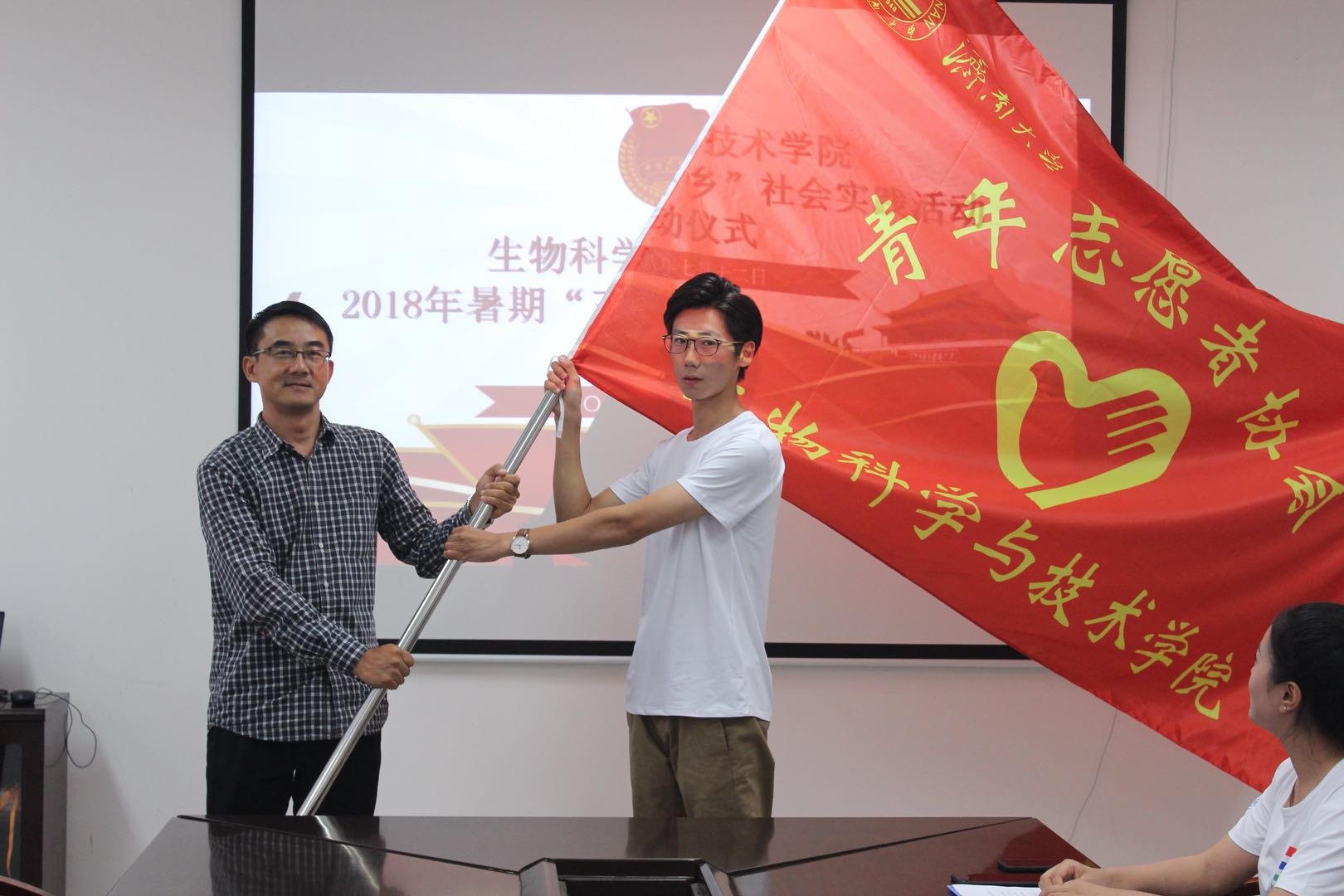 2018年暑期“三下乡”社会实践活动出征仪式在特教楼B1010隆重举行。教务处处长、院长黄加栋,av解说