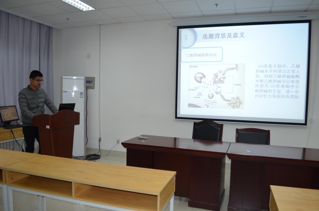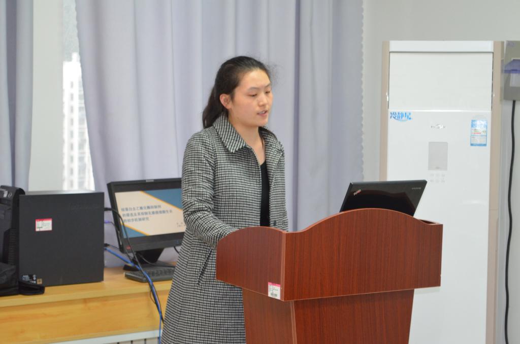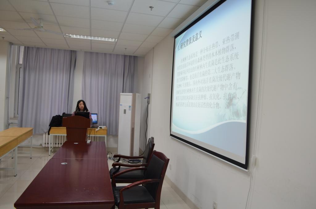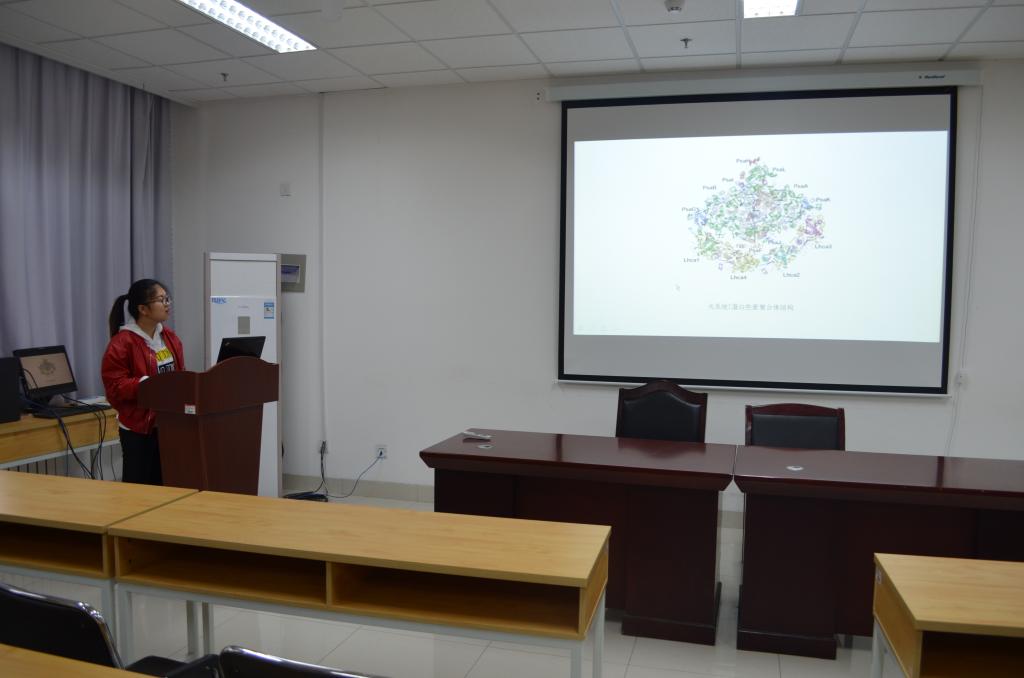 随后,李枘枘等14名硕士研究生同学结合自己的研究方向及专业背景,以学术报告的形式汇报了自己的研究工作。李枘枘以“环氧丙烷皂化废水剩余污泥水解酸化的研究”为题展示了自己的研究内容;宫岩以“动脉粥样硬化的发生及炎症反应”为主题向大家汇报了自己的研究内容;李秀秀和贺菲分别围绕“LHCA红移现象的研究”和“湛江红树林代谢产物抗污损活性研究”进行详细介绍;成志强、闻艺分别为大家讲解了“IAA-Tacrine类衍生物设计合成及生物活性测试”和“两性霉素B载药纳米胶束在体外溶解,抗菌及毒性研究”。徐红梅、贺甜甜、吴聪、牛林林和李为珺分别讲述了“AmB静脉注射剂抗真菌效力研究”、“薄叶山橙中化学成分的研究”、“苔类植物地钱中挥发油的抗真菌活性研究”、“葡萄糖二酸生成合成工程菌株的构建与表达”和“玉米农艺性状基因的动态关联分析”等内容。最后,韩丽娜、于倩倩和梁小利分别作了题为“筛选能够抑制乳腺癌细胞生长的组蛋白去乙酰化酶抑制剂及其初步机制研究”、“莱茵衣藻光合蛋白的转录组和翻译组”和“大麦耐低氮基因功能分析”的报告。报告会现场学术气氛浓厚,与会师生分别就自己感兴趣的问题,与作报告的同学进行了交流探讨。