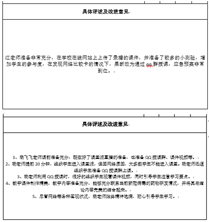 线上课程保障小组老师们发挥了教学骨干分子的传帮带作用,通过多渠道及时反馈上课信息,解决网络教学中的问题,分享了成熟的经验,探讨了教学模式,使教学质量得到了进一步的保障。