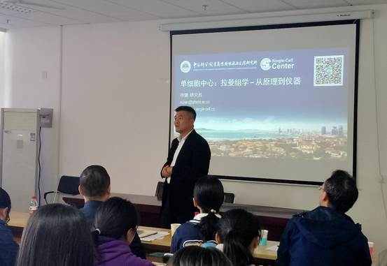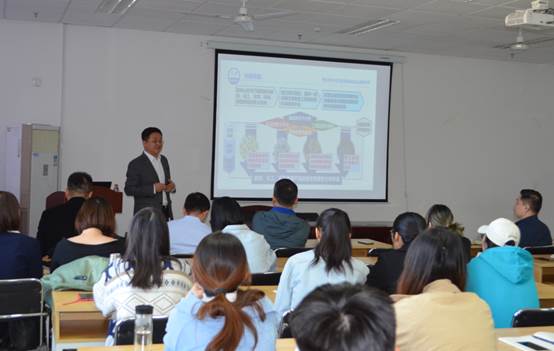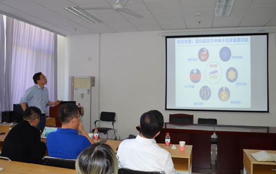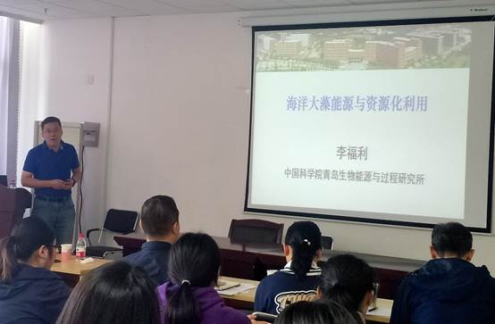青岛能源与过程研究所的发展定位以及学科分布和科研现状,然后作题为“微生物生物合成技术与绿色生物制造”报告,以螺旋藻规模培养制备甘油葡萄糖苷、蓝细菌高温高光逆境适应机制的解析与优化、植物源杀虫剂大黄素甲醚的微生物合成、蒽醌类天然产物开环新机制等研究展现了基础研究和应用研究有机融合;徐健主任作了题为“拉曼组学(Ramanomics):从原理到仪器”的报告,创造性的提出了拉曼组作为细胞群体/群落功能快速探测新手段的新视角;李福山组长作题为“海洋大藻能源与资源化利用”报告,从嗜热微生物资源的挖掘、多糖裂解酶热适应、热稳定性机制的解析、酶法制备海藻寡糖工艺等方面介绍了在海洋大藻开发利用方面所做的研究工作;姚礼山组长作题为“蛋白质相互作用检测与计算模拟”的报告,从盐键的温度依赖性机制、蛋白质氢键协同性检测等方面展现了在蛋白质相互作用检测与计算模拟方面的研究工作。报告结束后专家与参会老师和同学就报告中涉及的研究进行了深入交流探讨,现场气氛热烈,与会教师和研究生收获良多。