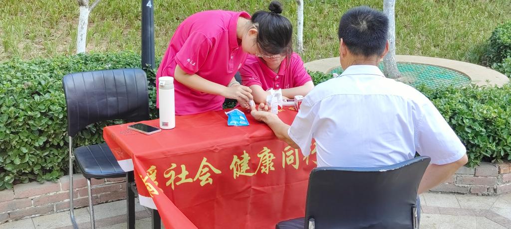 “情暖社会,健康同行”义诊队来到济南市市中区中海御山华府进行为期三天的义诊活动。团队成员分工明确,协调配合,认真负责,为老人和居民量血压、测血糖,并运用所学知识提出合理有效的方法和建议。同时,团队在社区开展“健康讲堂”,普及保健常识,宣传科学养生方式,提高群众自我保健意识,用实际行动为人民群众的健康保驾护航。
