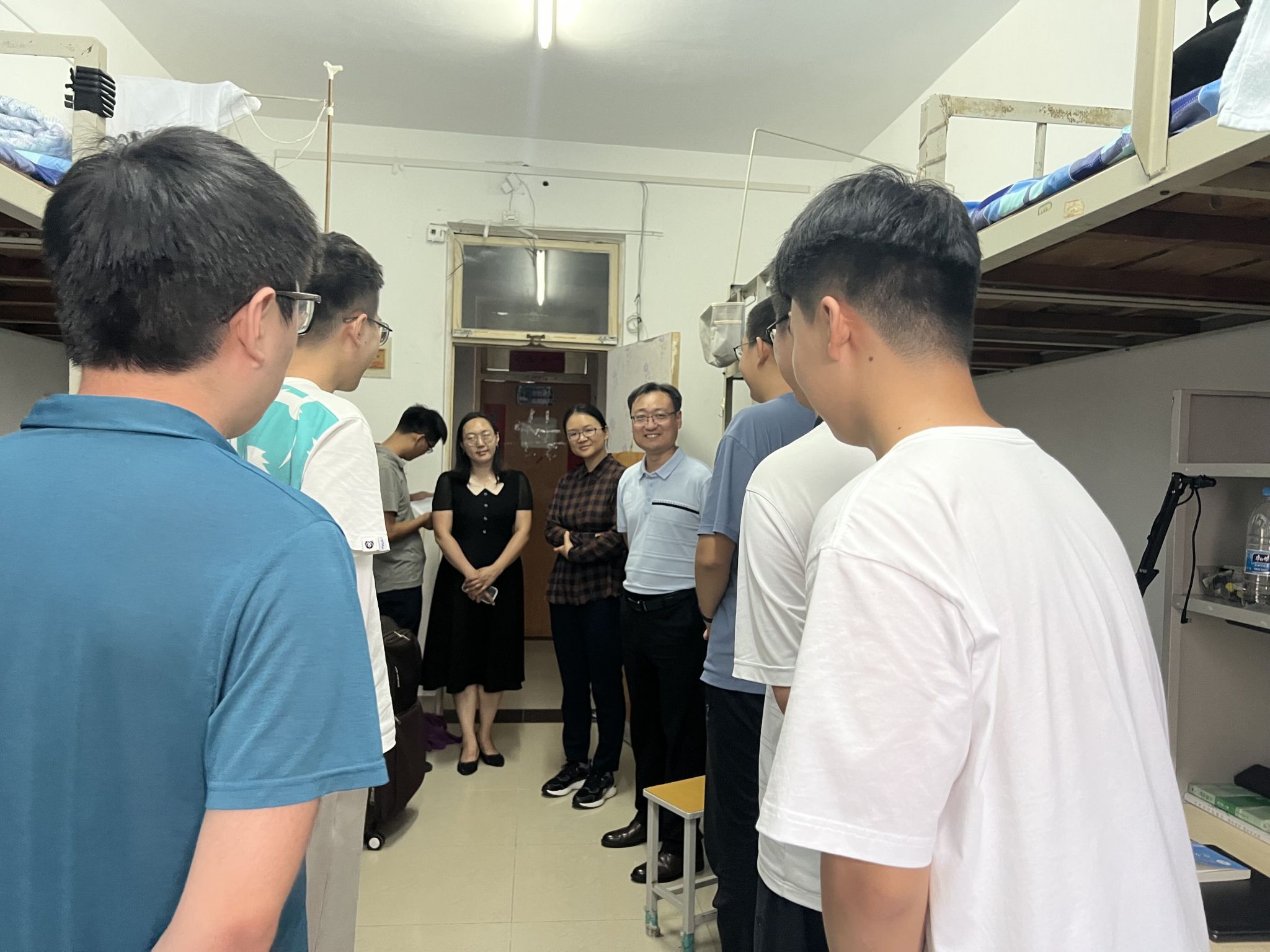 党委书记史国普,院长秦晓春,党委副书记、副院长武芳,学办主任阮斌,辅导员李立衡逐一走访宿舍,为学生送去亲切的问候与热切的关爱。