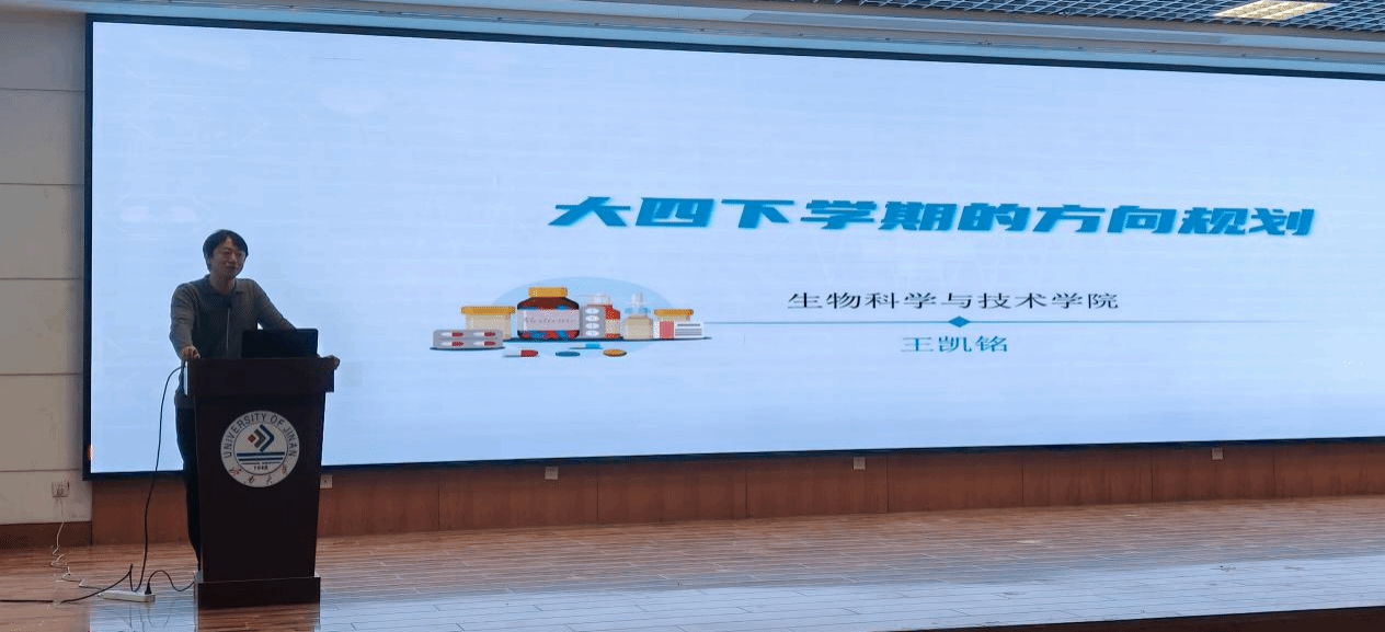 专业课教师代表王凯铭针对不同专业的学科特点,从人生目标、工作和研究方向选择、生涯规划、如何找一份好工作等四个方面进行了解读,帮助学生理清思路、指明方向。